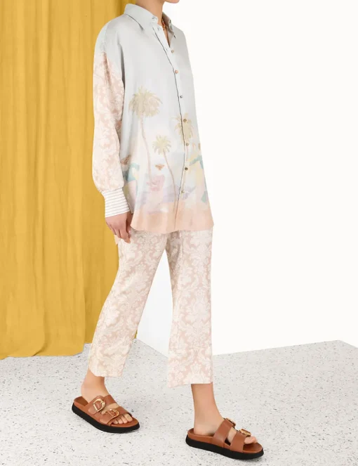 The Sensory Spliced Shirt In Spliced Print From Our Fall 2023 Collection, Luminosity. A Silk Shirt Featuring A Classic, Relaxed Silhouette And Spliced Prints Throughout.- Silk Shirt