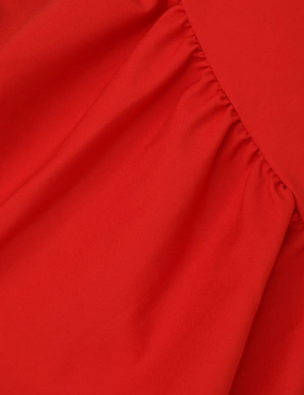 The Separates Sculpt Wide Link 1Pc In Red From Our Resort Swim 2024 Collection. A Halter Neck One Piece With Ruched Sides And Wide Link Detail At Centre Bust.- Italian Sculpt Lycra