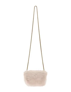 The Shearling Cross Body In Bone From Our Fall 2023 Collection, Luminosity. A Shearling Cross Body Bag Featuring Internal Card Pockets And A Gold Chain Strap, Finished With A Custom Branded Snap Closure.- Shearling Cross Body Bag