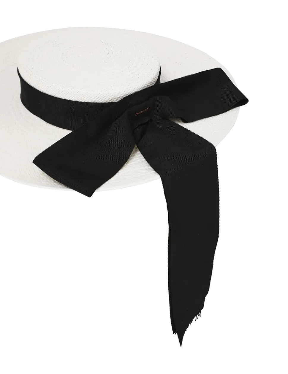 The Straw Boater In Ivory From Our Resort 2024 Collection, Matchmaker. A Wide Brim Straw Hat Featuring A Contrast Tie Around The Crown.- Straw Boater