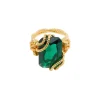 The Tangled Rope Cocktail Ring In Gold/Emerald From Our Spring 2023 Collection, Wonderland. A Gold Plated Ring Featuring A Statement Stone With An Intricate Cast Setting.- 20K Gold Plated