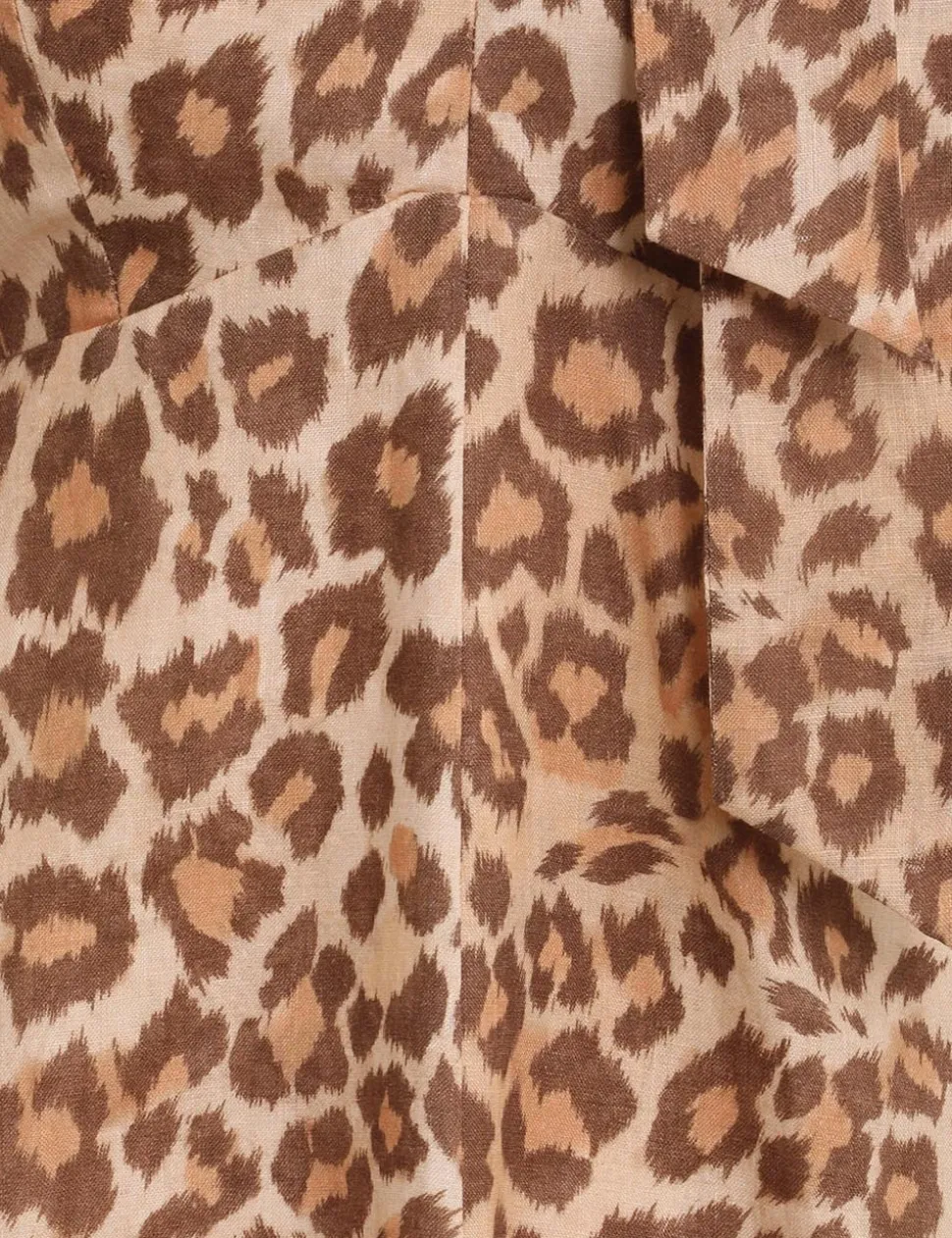 The Tie Neck Midi Dress In Toffee Leopard From Our Fall 2023 Collection, Luminosity. . A Linen Midi Dress Featuring A V-Neckline, Elbow Length Blouson Sleeves And A Neck Tie.- Linen Midi Dress