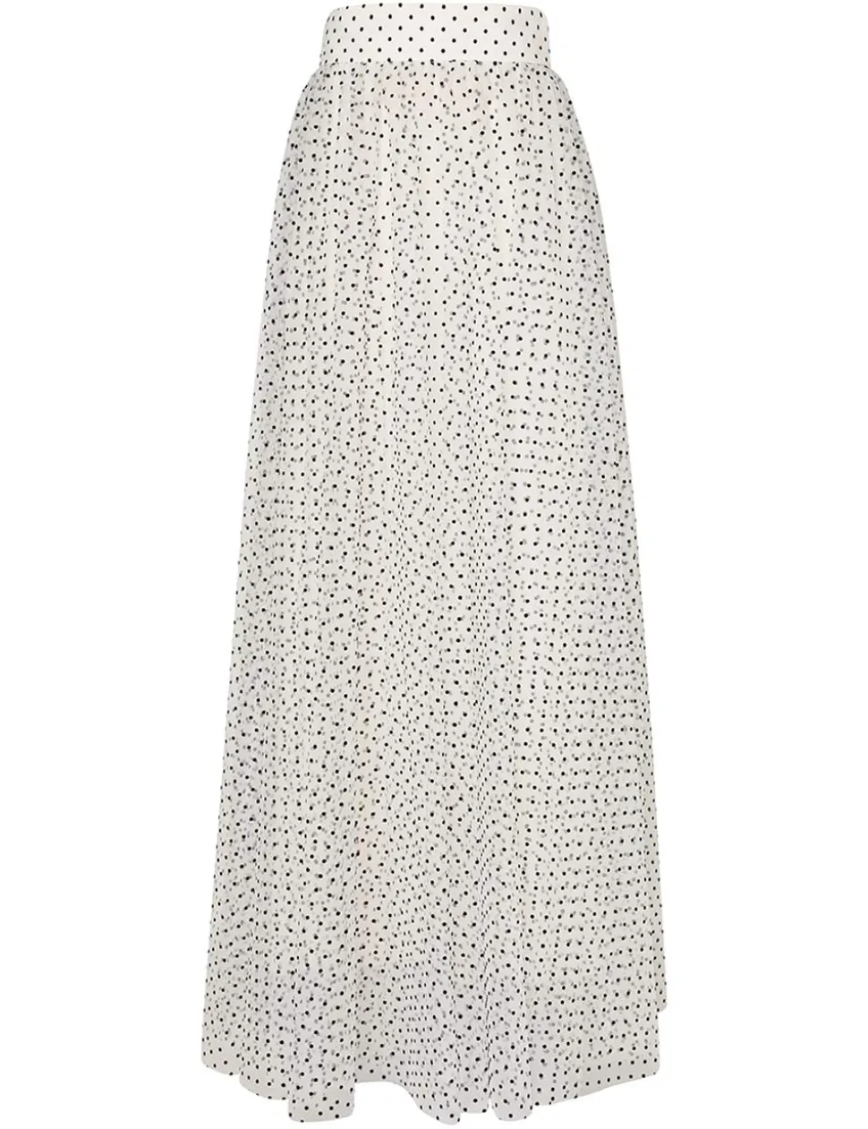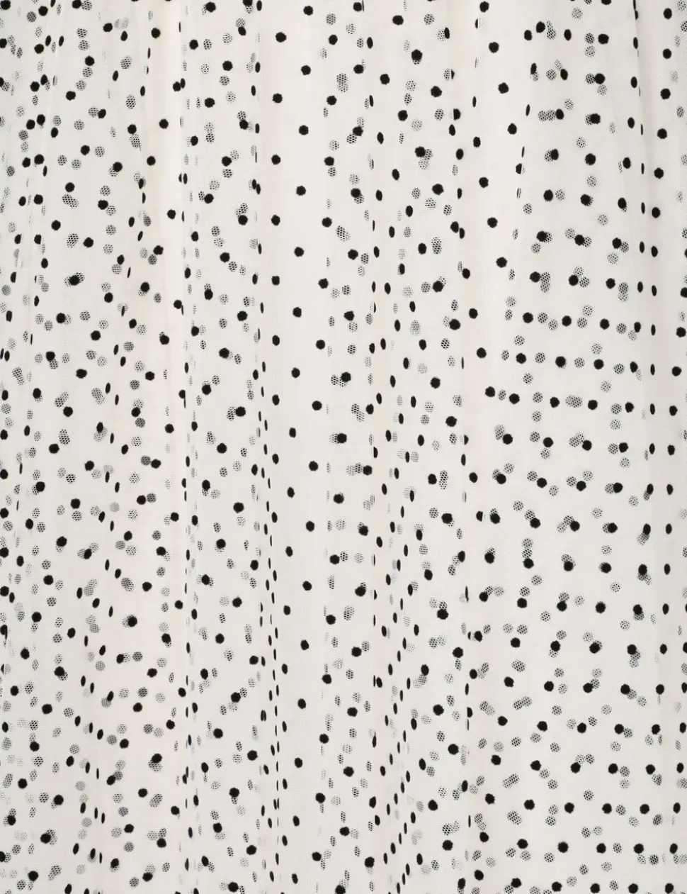 The Tulle Skirt In Cream/Black Dot From Our Resort 2024 Collection, Matchmaker. A Midi Skirt Featuring Flocked Tulle And Raw Hem.- Midi Skirt