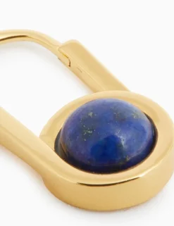 The Twisted Pin Earrings In Gold/Lapis From Our Spring 2023 Collection, Wonderland. A Gold Plated Pin Shape Earring Featuring Semi Precious Natural Stone.- 20K Gold Plated