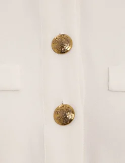 The Utility Midi Dress In Cream From Our Fall 2023 Collection, Luminosity. A Long Sleeve Midi Dress Featuring A Removable Tubular Belt, Gold Button Detailing And Side Seam Pockets.- Long Sleeve Midi Dress