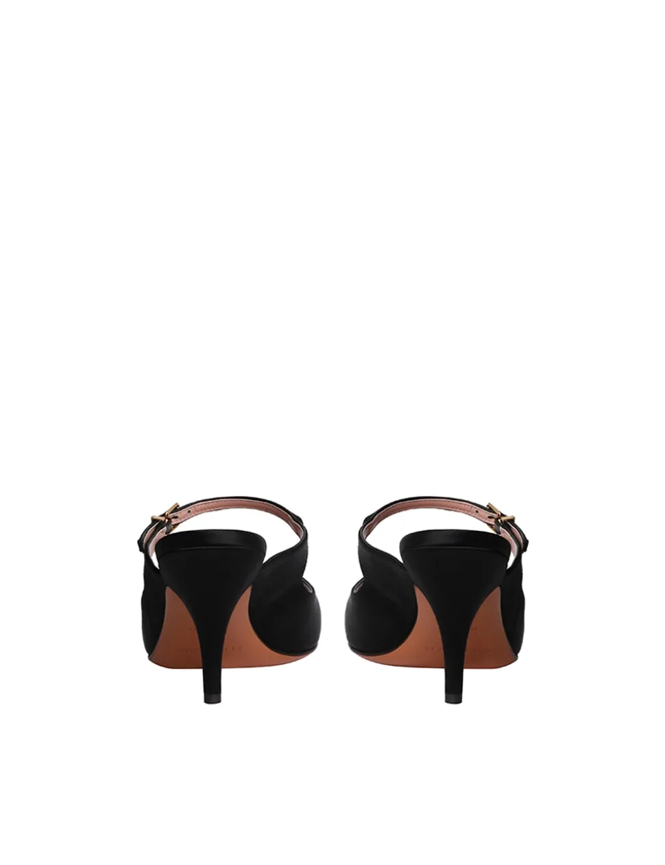 The Aura Mule 65 In Black From Our Resort 2024 Collection, Matchmaker. A Leather Stiletto Mule Featuring A Black Satin Exterior.- Leather Mule