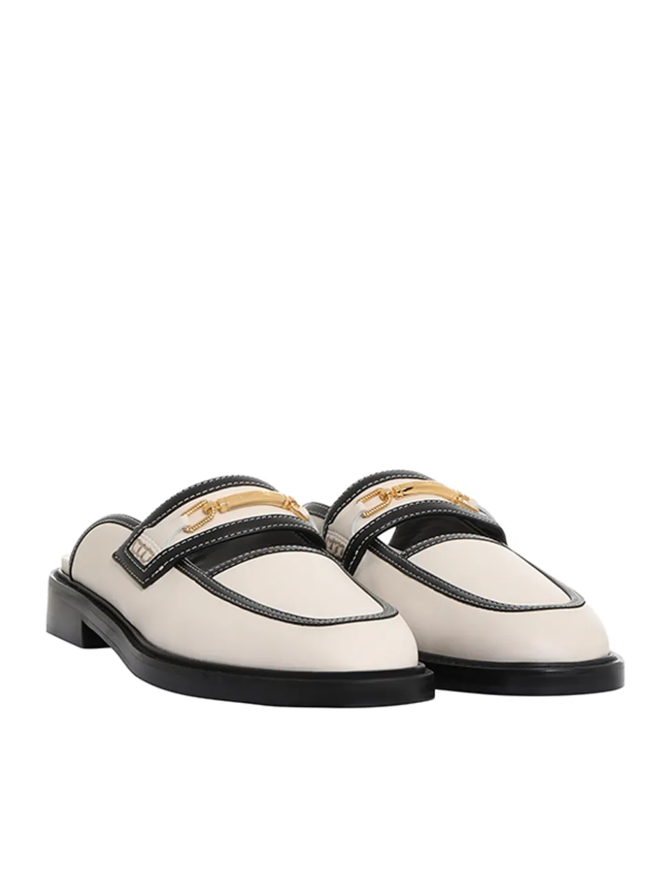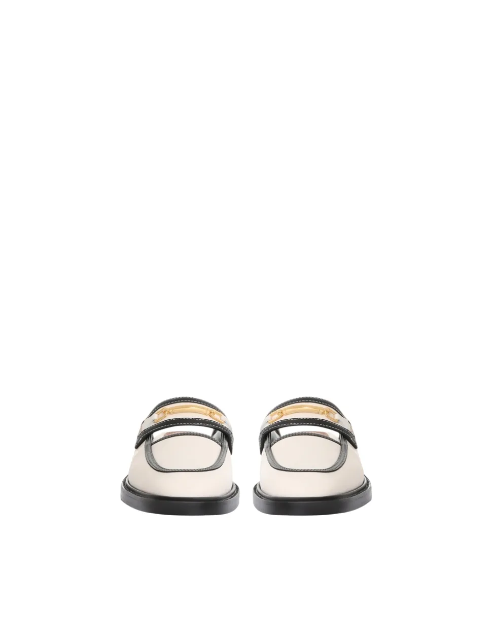 The Bacall Loafer In Macadamia From Our Resort 2024 Collection, Matchmaker. A Loafer Mule Featuring Contrast Leather And Zimmermann Branded Hardware.- Leather Loafer