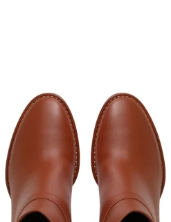 The Zimmermann Gallop Low Boots 75 In Tan From Our Fall 2023 Collection, Luminosity. A Leather Boot Featuring Topstitching Throughout And Custom Engraved Stirrup Hardware.- Made In Italy