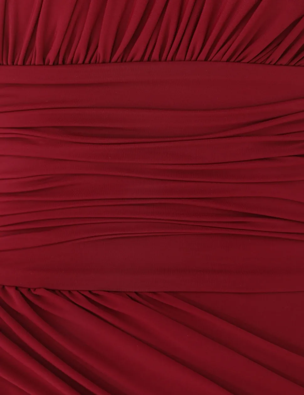 The Alight Draped Bandeau 1Pc In Ruby From Our Resort Swim 2024 Collection. A Lycra One Piece Featuring A Draped Bodice And Waist And Removable Cups.- Lycra One Piece