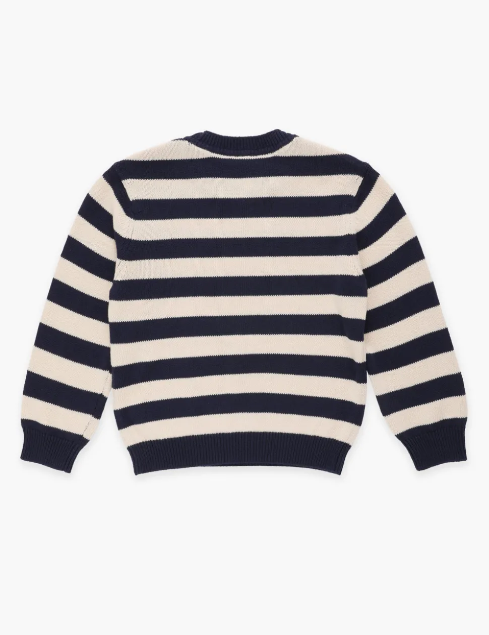 The Alight Embroidered Sweater In Multi From Our Resort Swim 2024 Collection. A Knitted Long Sleeve Sweater Featuring A Sun Motif And An Embroidered Palm Tree.- Stripe Knit Sweater