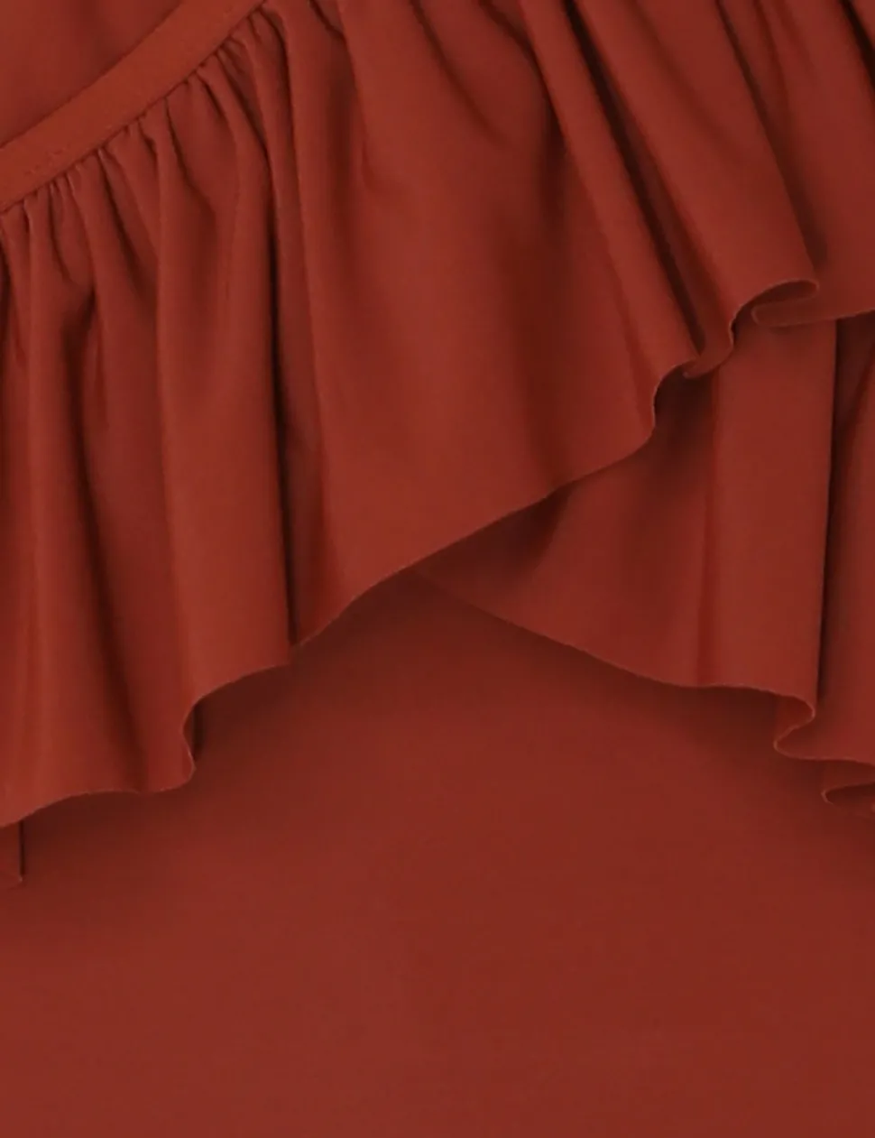 The Alight Gather Frill 1Pc In Terracotta From Our Resort Swim 2024 Collection. A Lycra Tie Up One Piece Featuring Frills Throughout.- Lycra One Piece