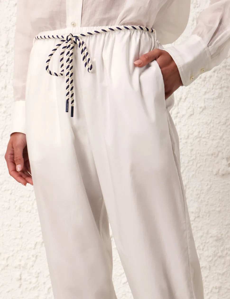 The Alight Harem Pant In Ivory From Our Resort Swim 2024 Collection. A Cotton Pant Featuring An Elasticated Waistband And A Two Tone Rope Belt.- Cotton Harem Pant