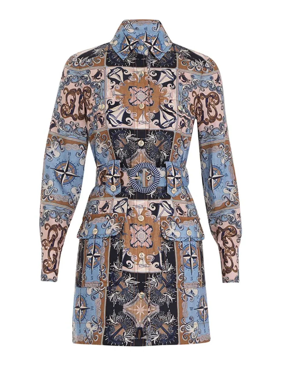The Alight Mini Utility Dress In Nautical Patch From Our Resort Swim 2024 Collection. A Linen Mini Dress With A Removable Belt.- Linen Mini