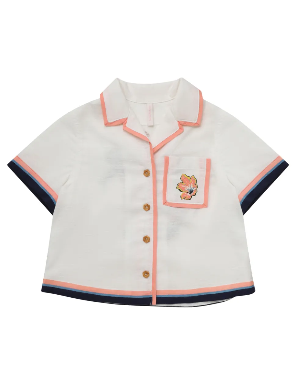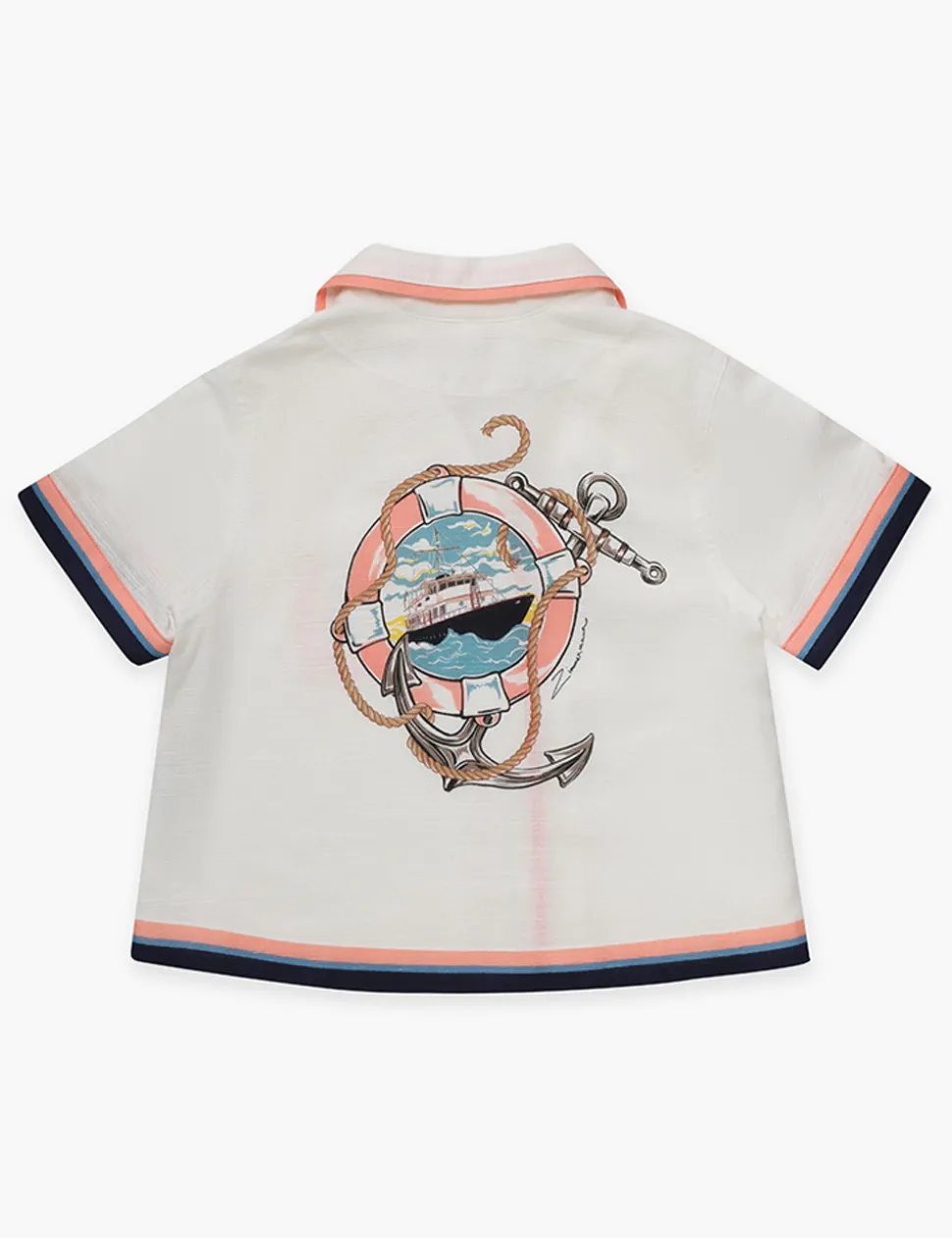 The Alight Relaxed Shirt In Ivory Multi From Our Resort Swim 2024 Collection. A Cotton Button Up Shirt With Short Sleeves, A Classic Collar And Chest Pocket.- Cotton
