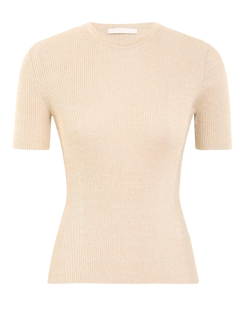 The Alight Rib T-Shirt In Cream Lurex From Our Resort Swim 2024 Collection. A Slim Fit Knit Tee Featuring Short Sleeves And Ribbing Throughout.- Ribbed Knit