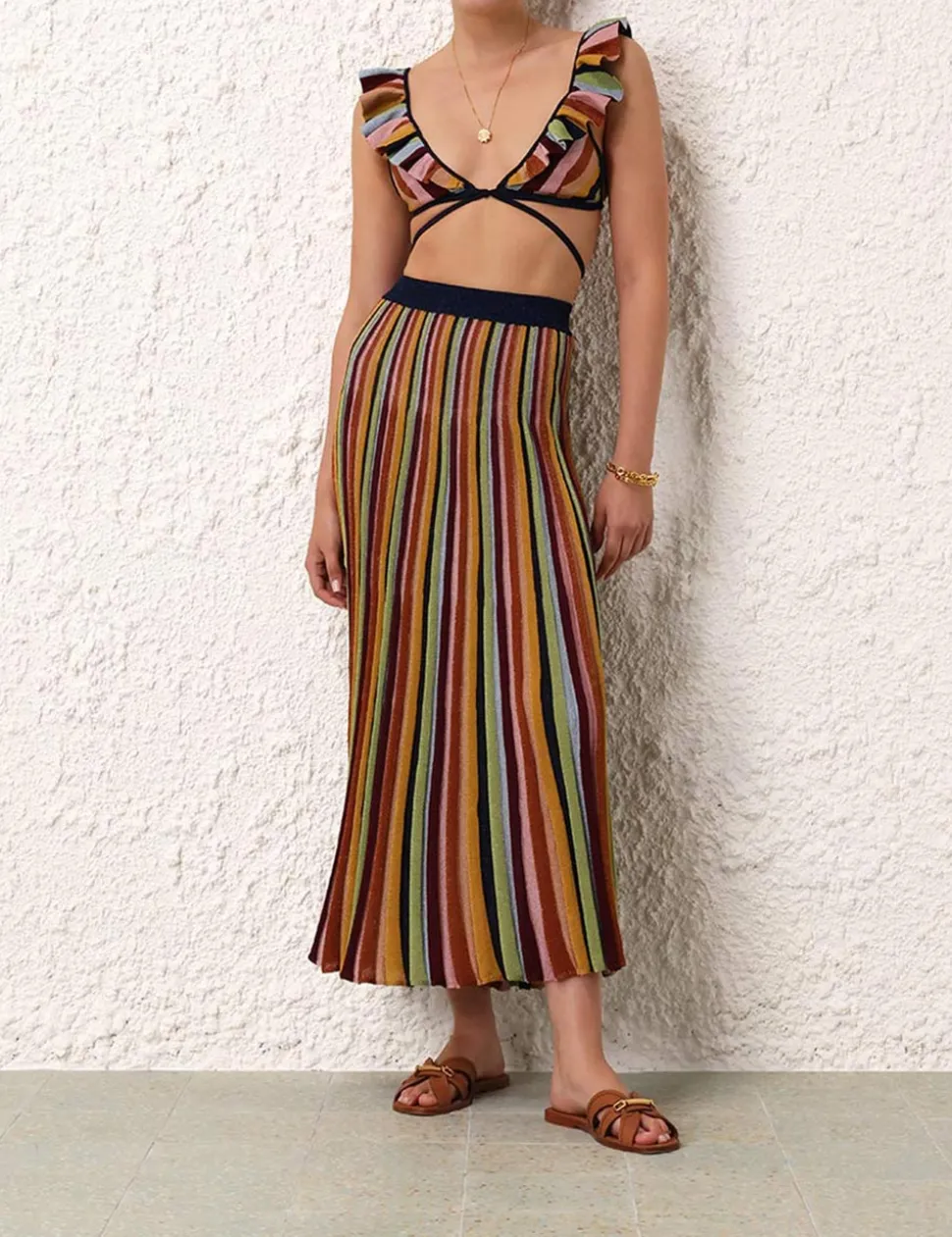 The Alight Lurex Stripe Midi Skirt In Lurex Multi From Our Resort Swim 2024 Collection. A Midi Skirt Constructed From A Contrasting Lurex Knit.- Knit Midi Skirt