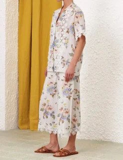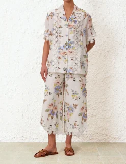 The Applique Oversized Shirt In Blue Floral From Our Resort 2024 Collection, Matchmaker. A Ramie Shirt Featuring Lace Trims Throughout.- Ramie Oversized Shirt