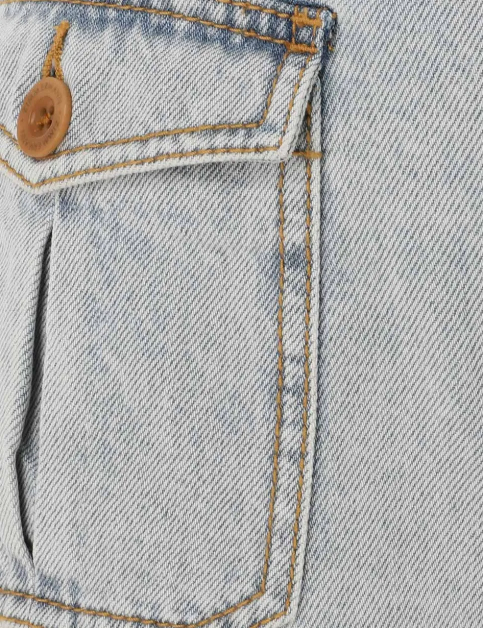 The August Denim Mini Short In Storm Blue From Our Resort Swim 2024 Collection. A Denim Short Featuring Front And Back Pockets.- Denim Short