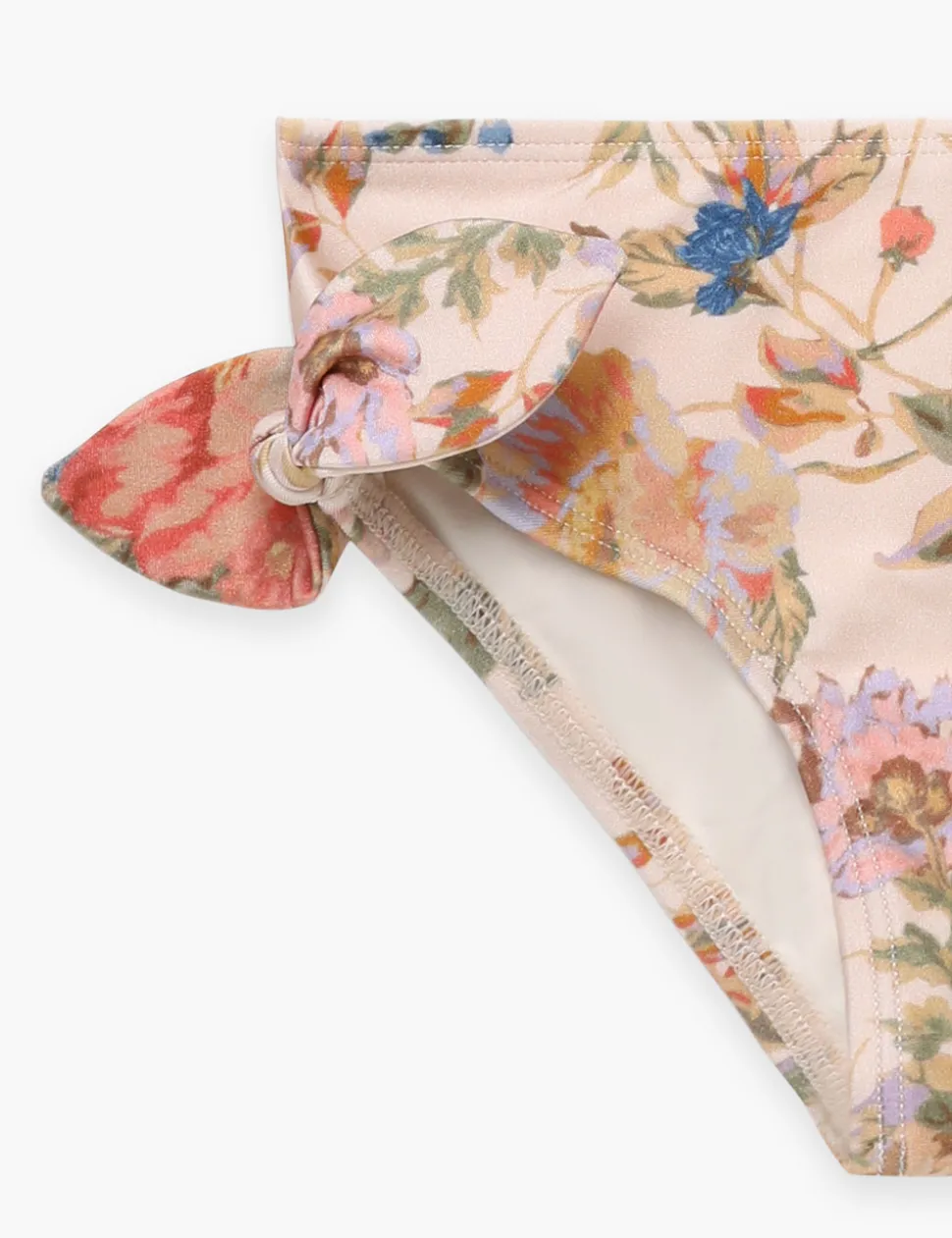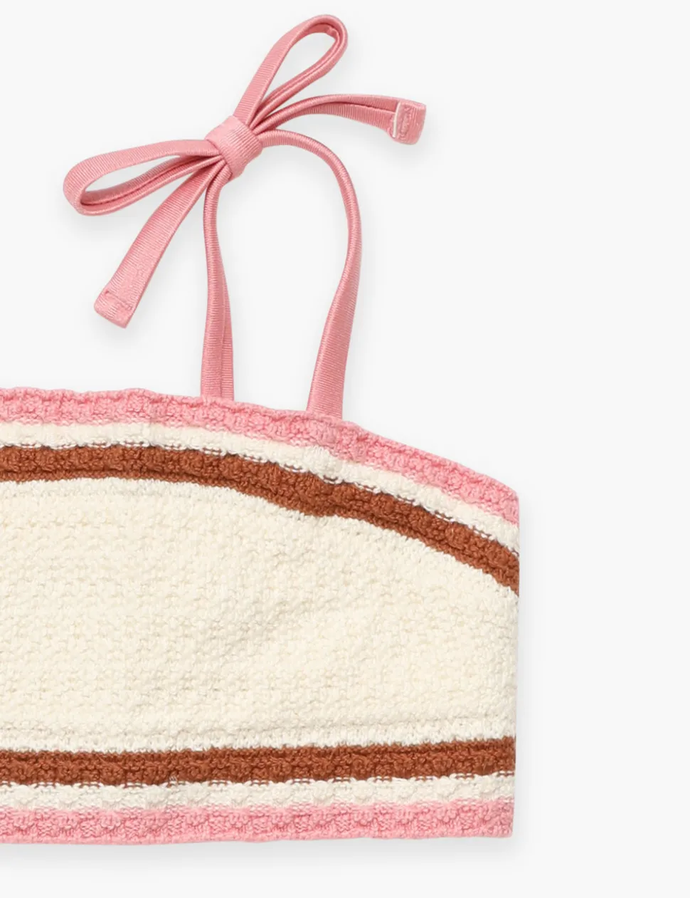 The August Knit Bandeau Bikini In Cream Floral From Our Resort Swim 2024 Collection. A Kids Bikini Featuring A Knit Bikini Top And Shiny Lycra Pant .- Knit And Lycra Bikini Set