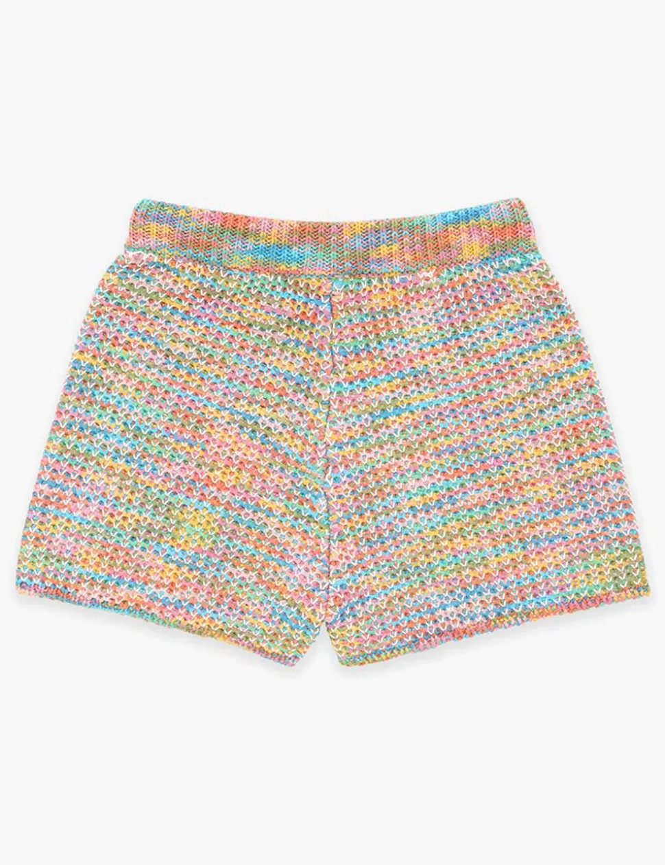 The August Textured Knit Shorts In Multi From Our Resort Swim 2024 Collection. A Knitted Short With An Elasticated Waistband.- Kids Knit Short