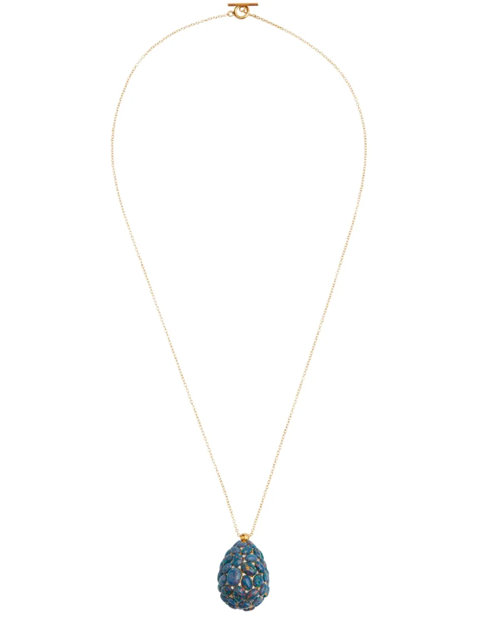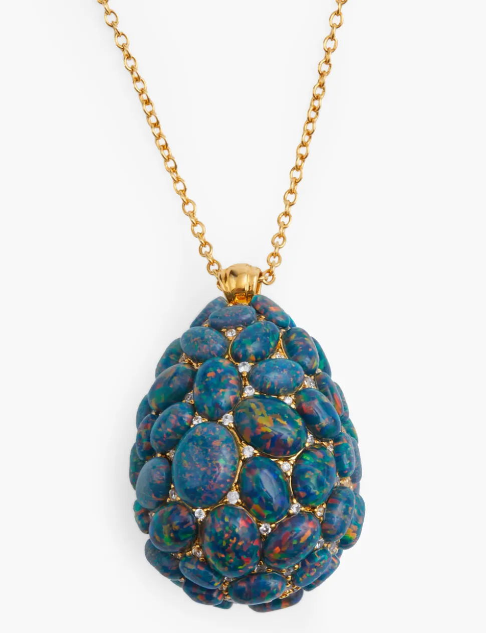 The Austral Statement Earrings In Gold/Green From Our Fall 2023 Collection, Luminosity. A Gold Chain Necklace Featuring A Synthetic Opal And Cubic Zirconia Stone Pendant.- 20Kt Gold Plated