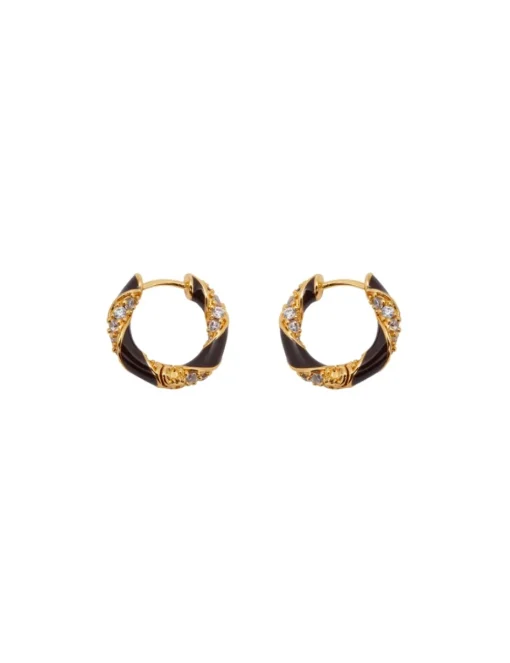 The Candy Stripe Pave Hoops In Gold/Bordeaux From Our Spring 2023 Collection, Wonderland. A Gold Plated Hoop Earring Featuring Cubic Zirconia Stones Throughout.- 20K Gold Plated