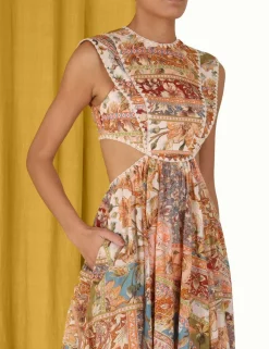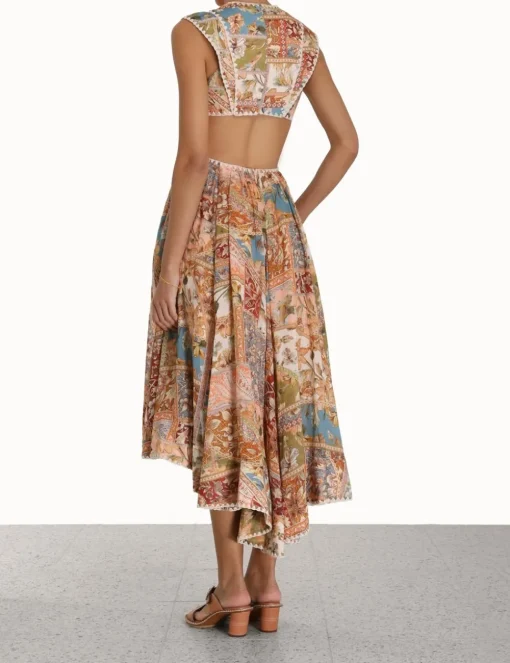 The Chintz Asymmetric Dress In Floral Patch From Our Summer Swim 2023 Collection. A Ramie Midi Dress Featuring A Cutaway Back And Waist, Finished With An Asymmetric Hem.- Ramie Midi Dress