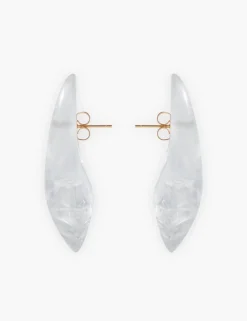 The Crystal Carved Pebble Earrings In Crystal From Our Fall 2023 Collection, Luminosity. A Gold Pleated Earring Featuring Transparent Quartz Stone.- 20Kt Gold Plated