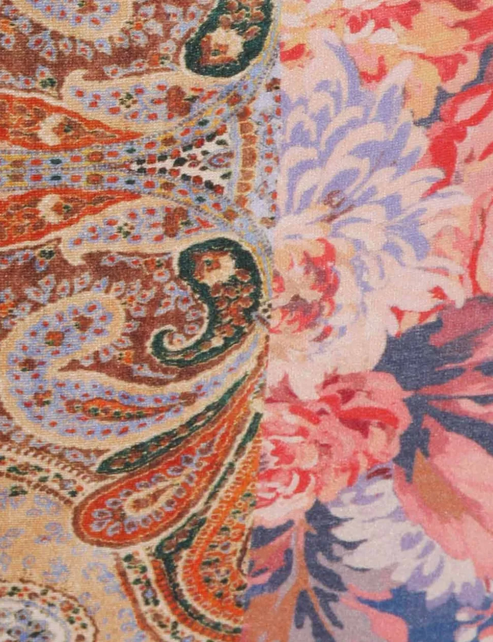 The Devi Link High Waist Pant In Patch Paisley From Our Summer Swim 2023 Collection. A Lycra High Waist Pant Featuring Belt Loops And A Contrast Placement Print Belt With A Link Detail.- High Waist Lycra Pant