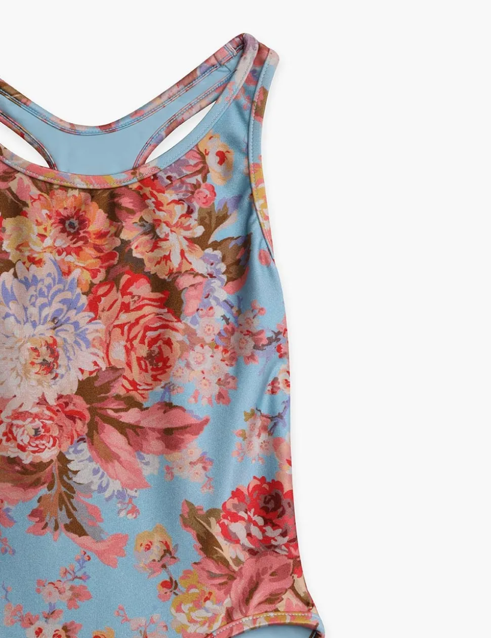 The Devi Racer 1Pc In Teal Floral From Our Summer Swim 2023 Collection. A Lycra One Piece Featuring A Racer Back And Cut Out.- Lycra One Piece