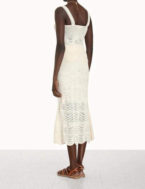 The Devi Textured Knit Skirt In Cream From Our Summer Swim 2023 Collection. A Midi Skirt Featuring An Elastic Waistband And Scallop Knit Throughout.- Knitted Midi Skirt