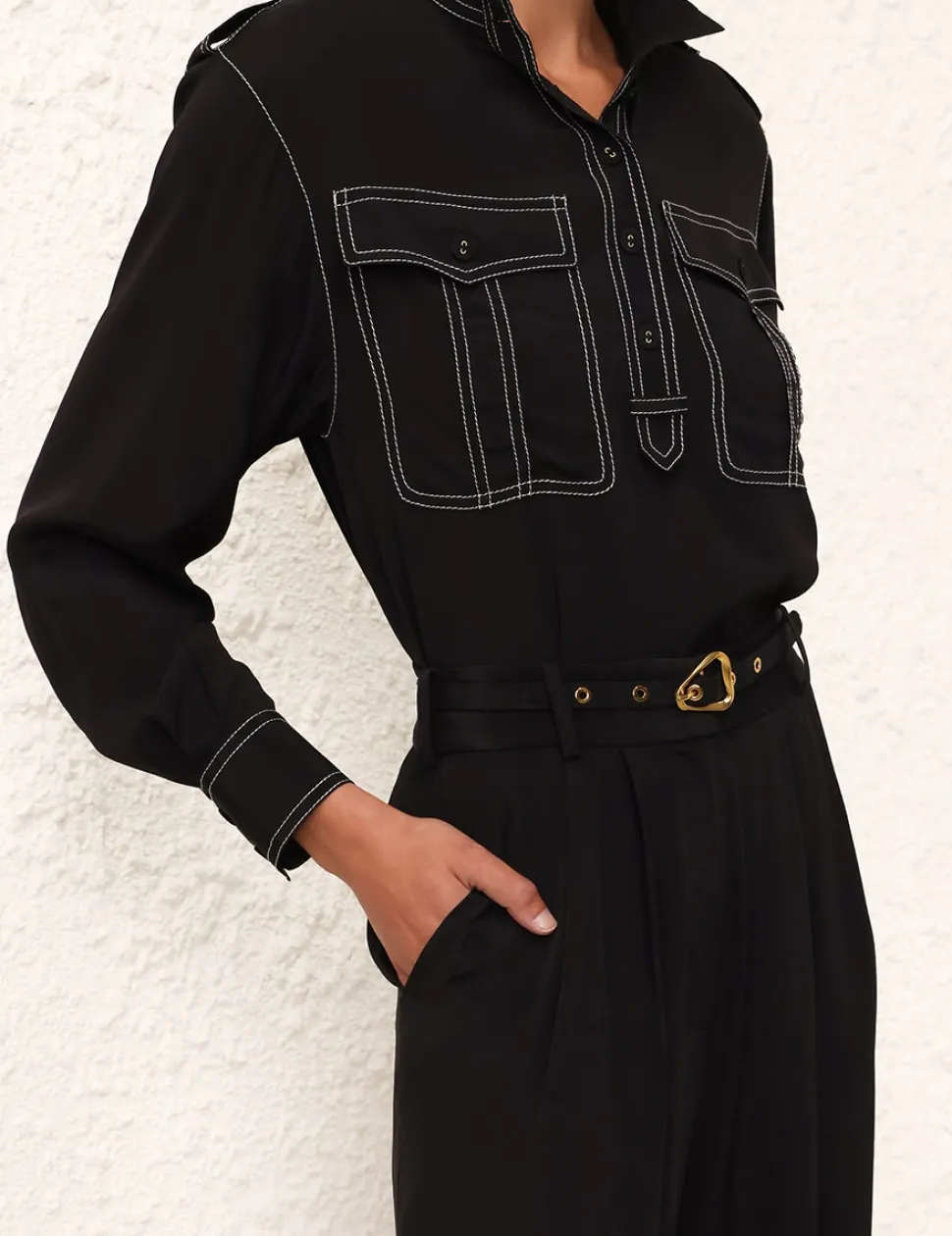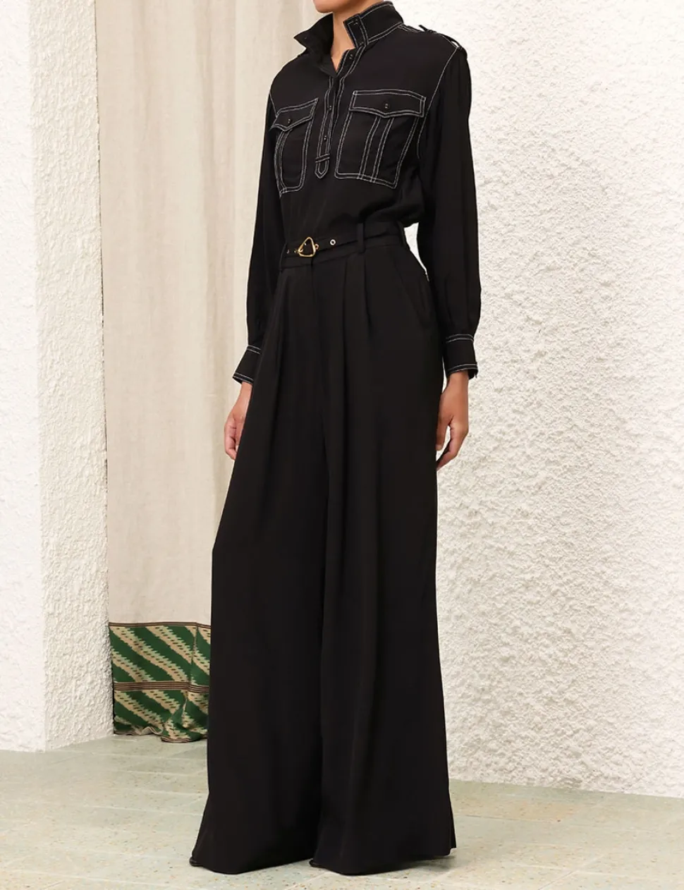 The Double Tuck Pant In Black From Our Resort 2024 Collection, Matchmaker. A Wide Leg Pant Featuring Side Seam Pockets And A Self Cover Belt.- High Waisted Silhouette