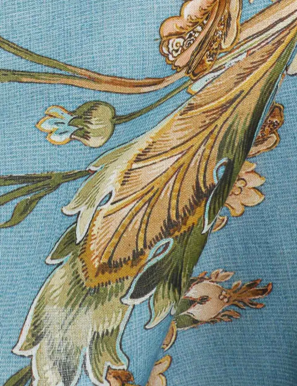 The Fringe Cotton Pareo In Blue Daisy Floral From Our Summer Swim 2023 Collection. A Large Rectangle Pareo Featuring Frayed Edges And A Placement Print Throughout.- Cotton