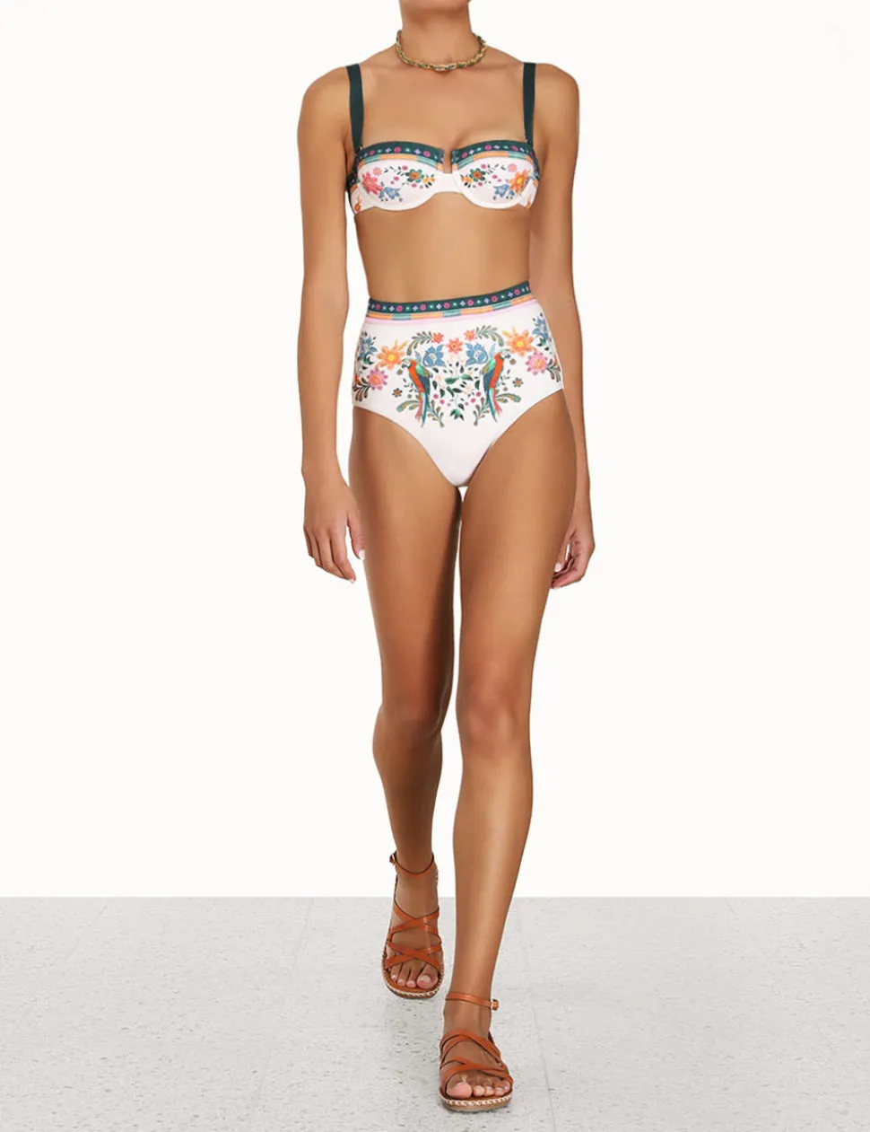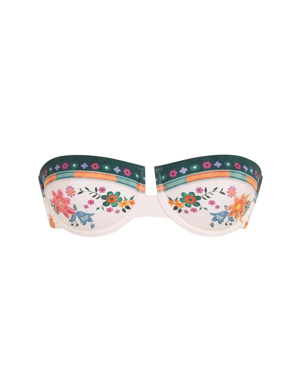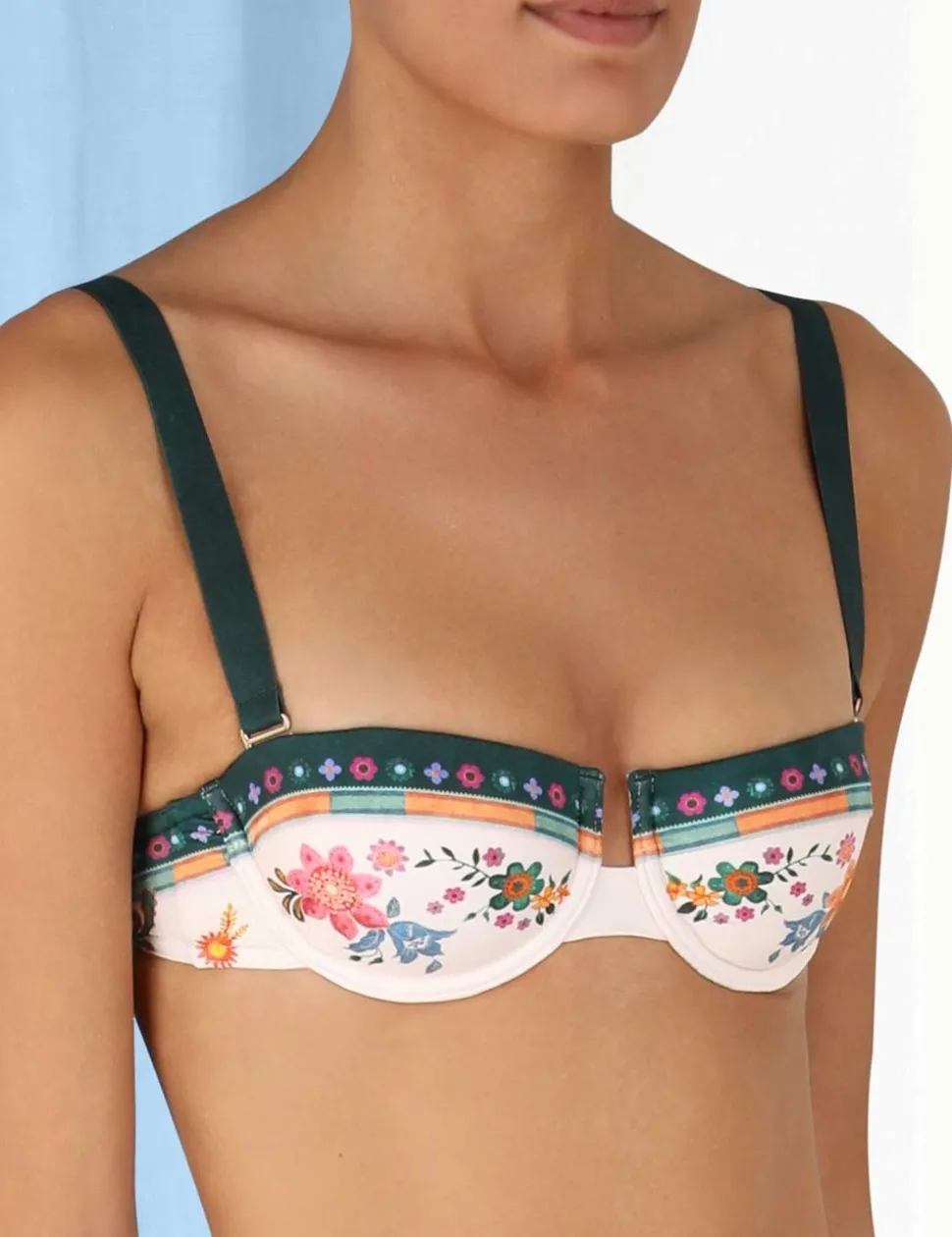 The Ginger Balconette Bra In Cream Multi From Our Summer Swim 2023 Collection. A Balconette Bikini Top Constructed From Italian Lycra, Featuring A Placement Print Throughout.- Italian Lycra