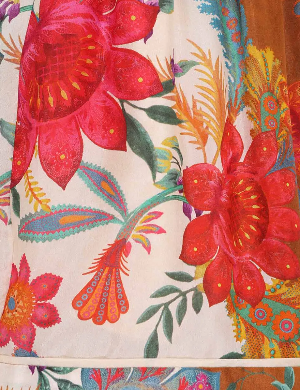 The Ginger Relaxed Short In Cream/Brown Floral From Our Summer Swim 2023 Collection. A Silk Short Featuring An Elastic Waistband With Drawstring And Contrast Piping.- Silk Shorts