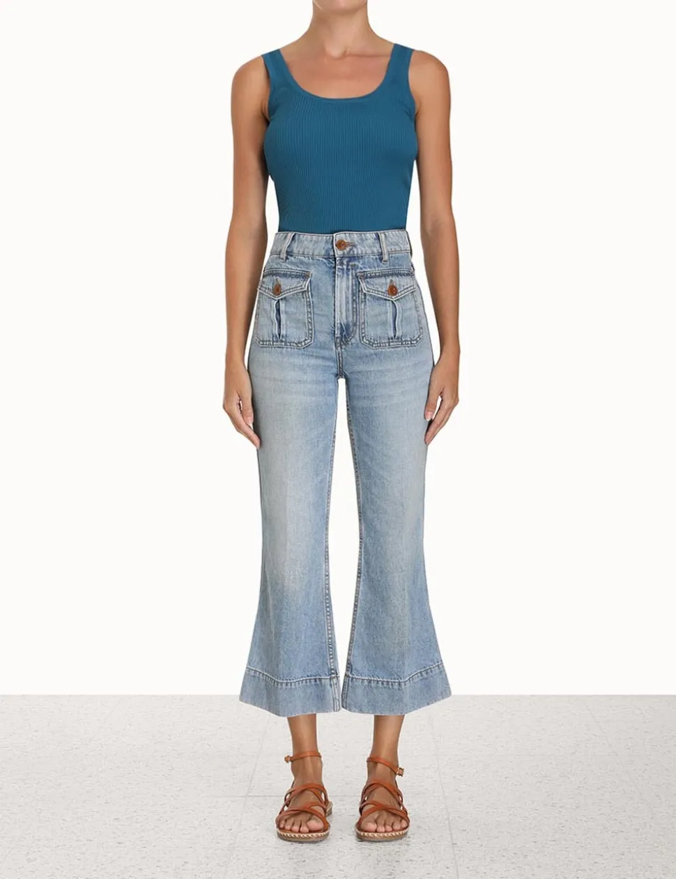 The Ginger Scoop Neck Tank In Teal From Our Summer Swim 2023 Collection. A Ribbed Knit, Fitted Tank With A Scoop Neckline At The Front And Back.- Fitted, Ribbed Tank