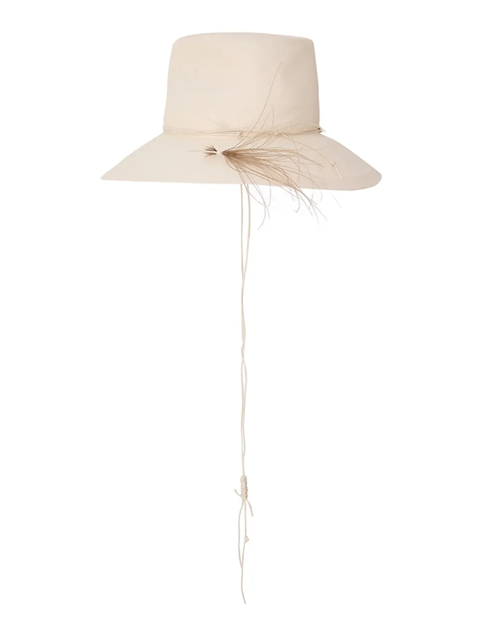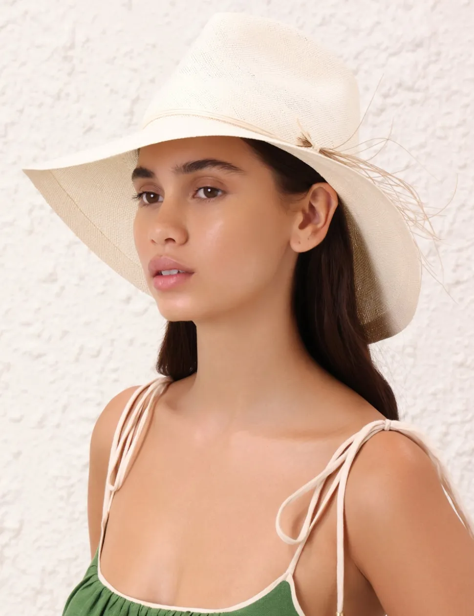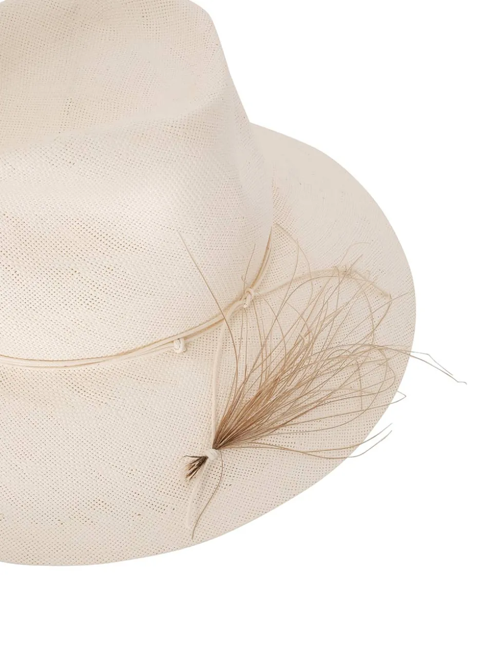 The Glazed Straw Collapsible Hat In Natural From Our Resort 2024 Collection, Matchmaker. A Straw Hat Featuring A Feather Trim.- Straw Hat