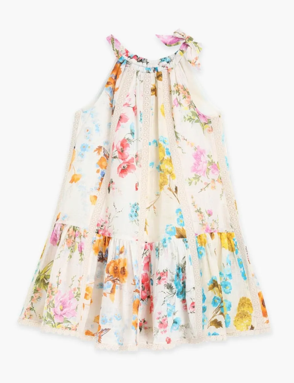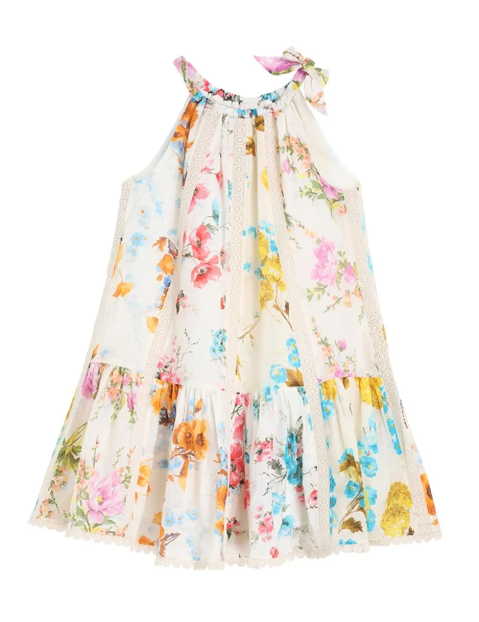 The Halcyon Halter Dress In Spliced From Our Summer Swim 2023 Collection. A Cotton Dress With A Self Tie Halter Neck And Scalloped Hem.- Cotton Dress