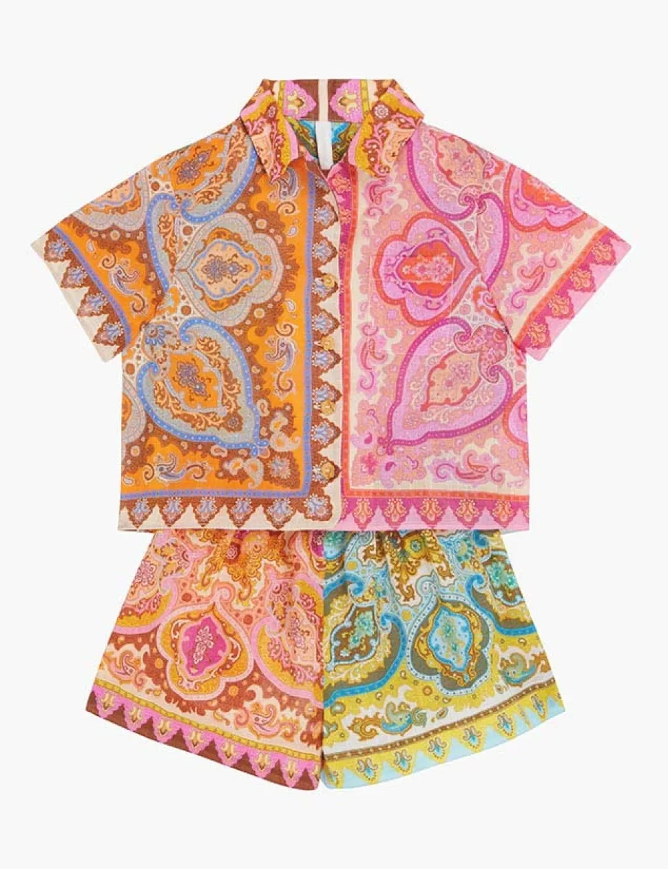 The Halcyon Paisley Shirt In Spliced From Our Summer Swim 2023 Collection. A Cotton Shirt Featuring Buttons Down The Centre Front And Spliced Prints Throughout.- Cotton Shirt