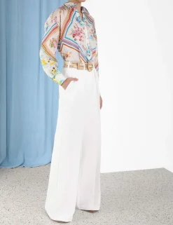 The Halcyon Relaxed Shirt In Multi From Our Summer Swim 2023 Collection. A Silk Habotai Shirt Featuring A Classic Collar, Drop Shoulders And Buttoned Cuffs.- Silk Habotai