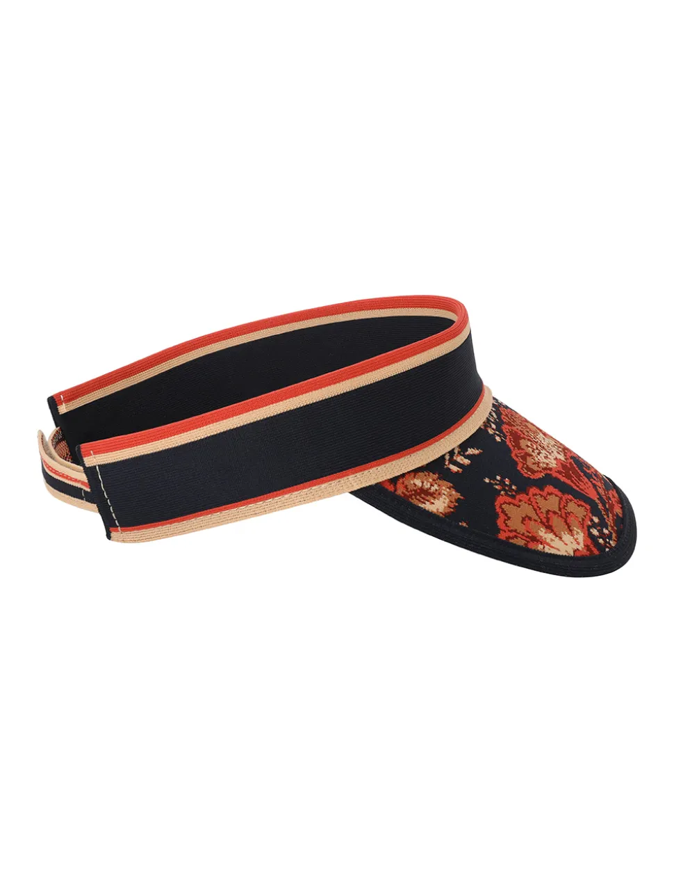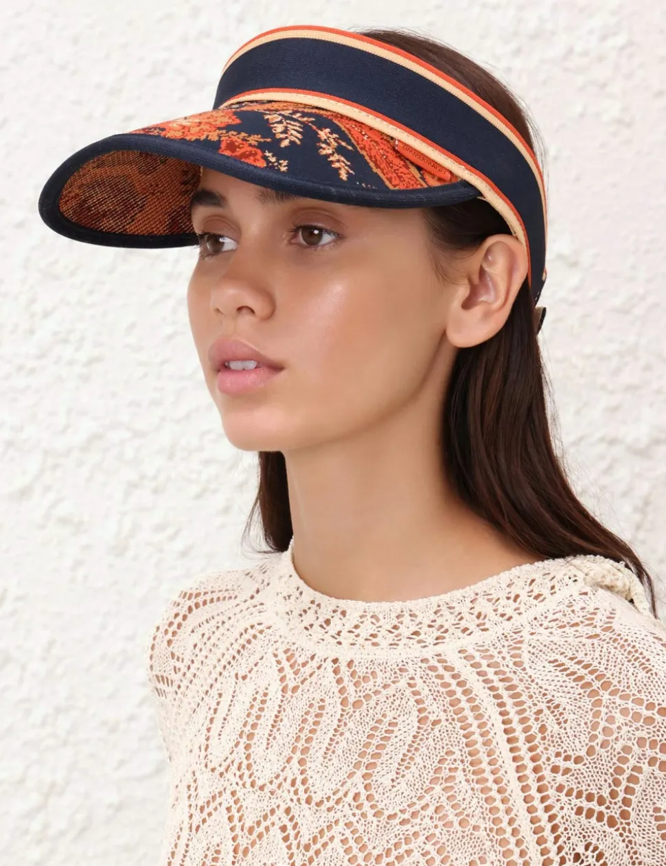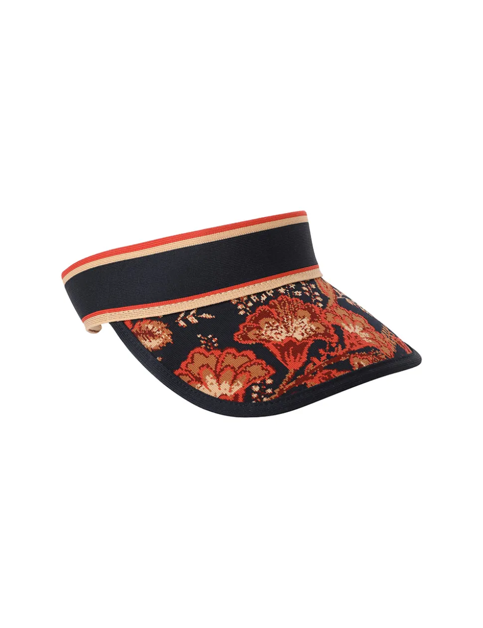 The Jacquard Visor In Dark Navy Floral From Our Resort 2024 Collection, Matchmaker.A Cotton Jacquard Visor With A Velcro Strap.- Printed Visor