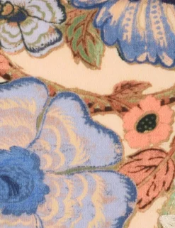 The Junie Crochet Edge Bikini In Ivory/Blue Floralfrom Our Resort Swim 2024 Collection. An Italian Lycra Bikini Set Featuring Crochet Edging And Self Tie Straps With Toggle Ends.- Italian Lycra