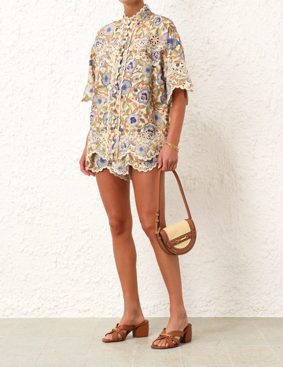 The Junie Embroidered Short In Ivory/Blue Floralfrom Our Resort Swim 2024 Collection. A Linen Short Featuring Placement Embroidery And A Removable Belt.- Linen High Waisted Short