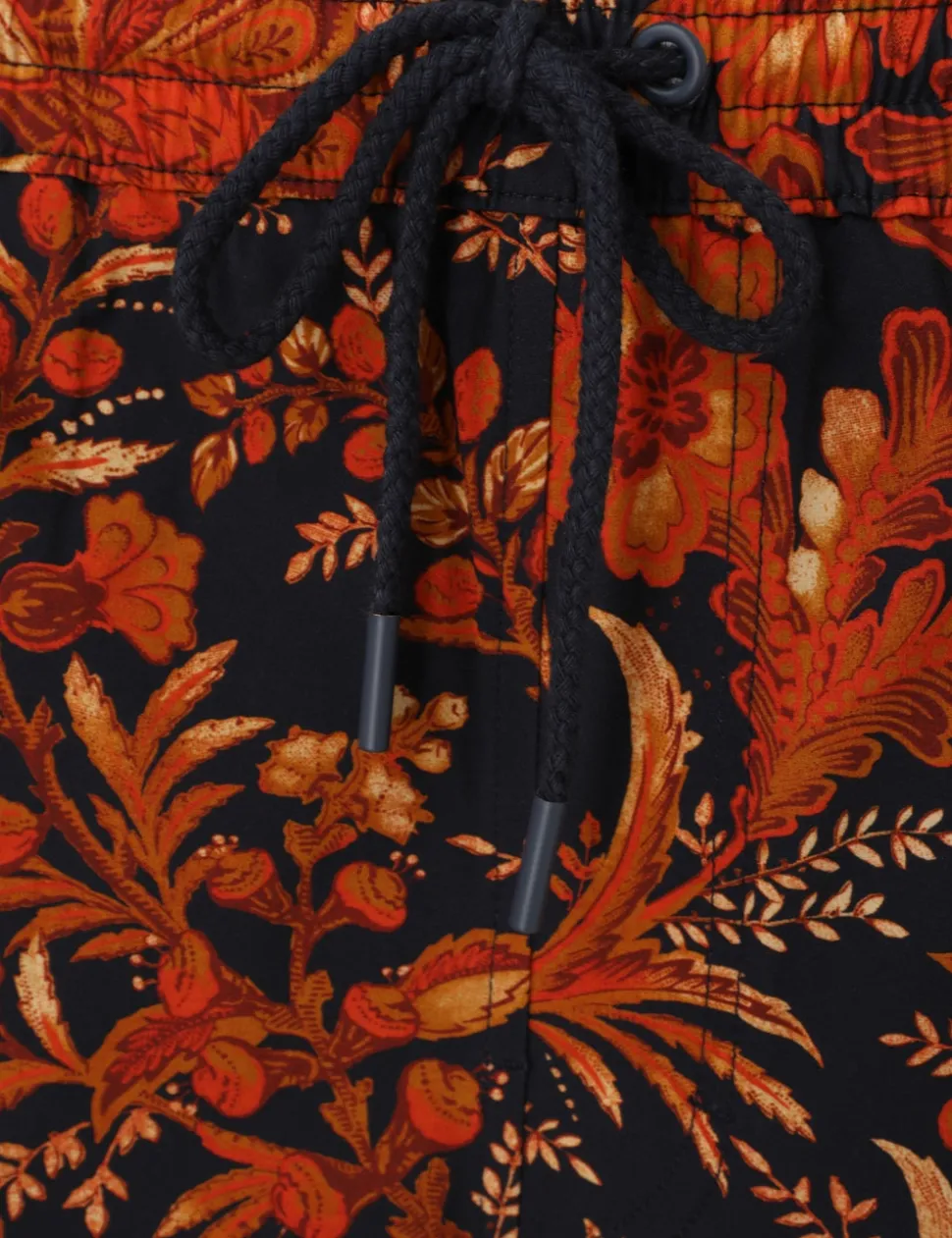 The Mens Boardshort In Dark Navy Floral From Our Resort Swim 2024 Collection. A Printed Boardshort With Elasticated Waistband, Drawstring Cord, Side Inseam Pockets And Inbuilt Support Mesh Lining.- Relaxed Boardshorts