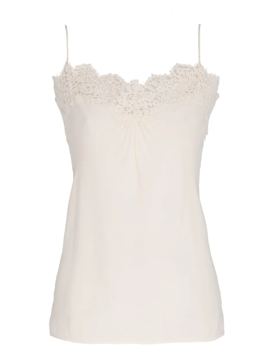 The Lace Cami In Cream From Our Fall 2023 Collection, Luminosity. A Cami Featuring A Lace Trim Along The Neckline.- Lace Cami