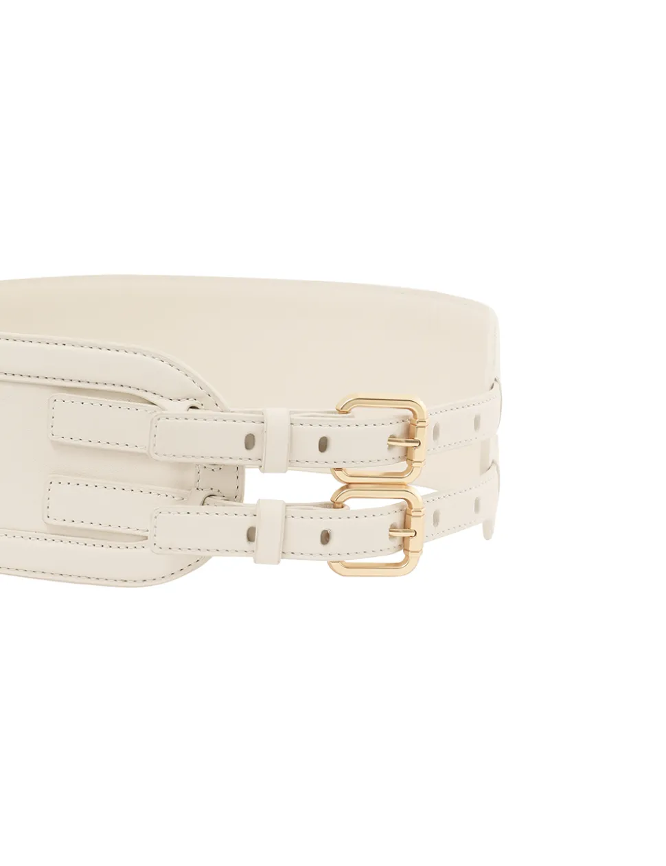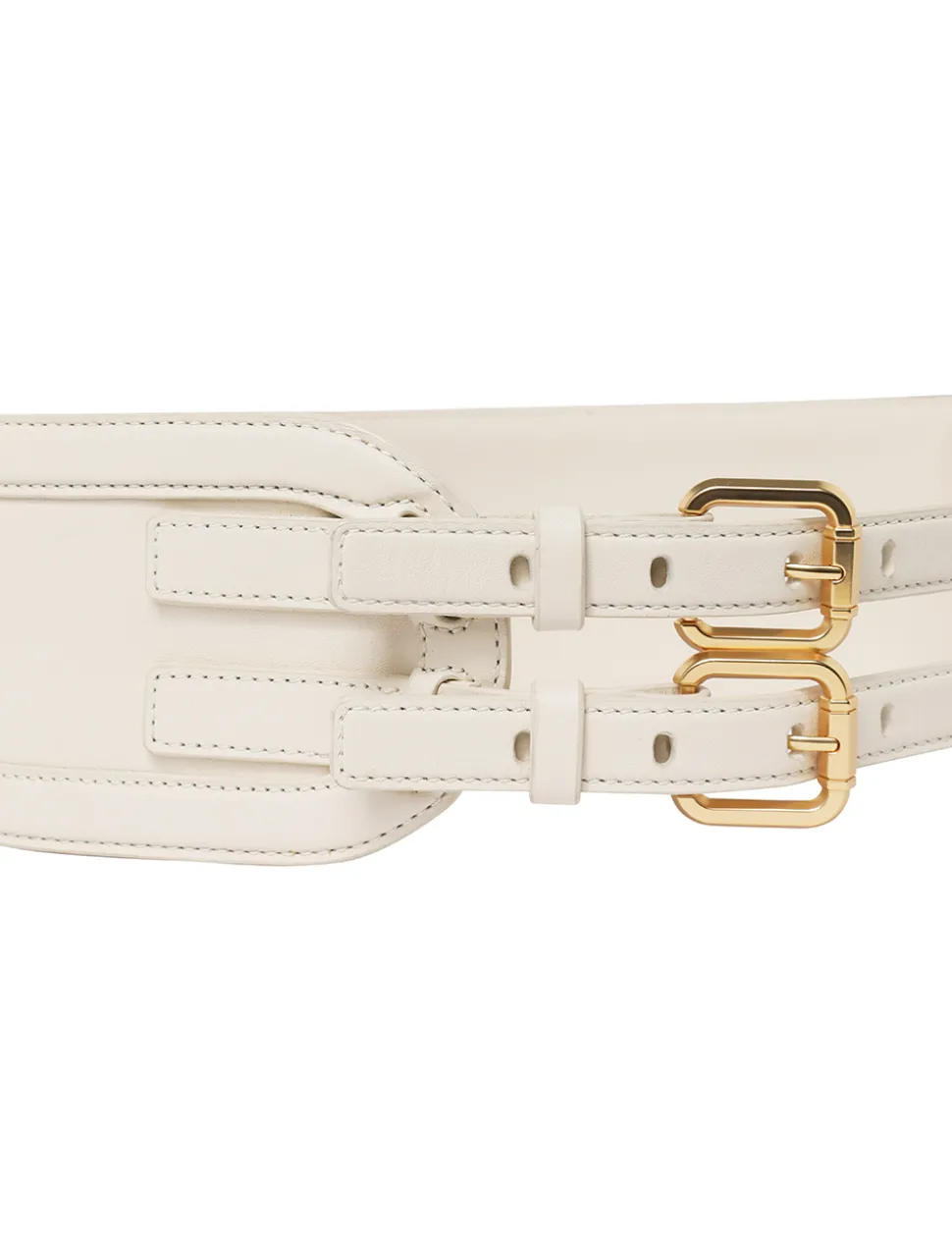 The Leather Belt 90 In Macadamia From Our Resort 2024 Collection, Matchmaker. A Wide Leather Belt Featuring A Double Buckle And Topstitching Throughout.- Waist Belt