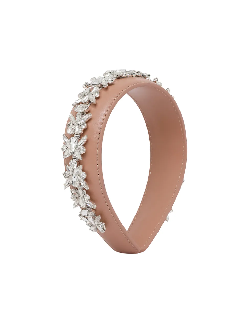 The Leather Crystal Headband In Blushfrom Our Resort 2024 Collection, Matchmaker. A Headband Featuring A Trim Of Diamantes Throughout.- Leather Headband