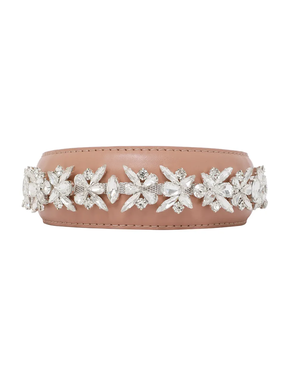 The Leather Crystal Headband In Blushfrom Our Resort 2024 Collection, Matchmaker. A Headband Featuring A Trim Of Diamantes Throughout.- Leather Headband