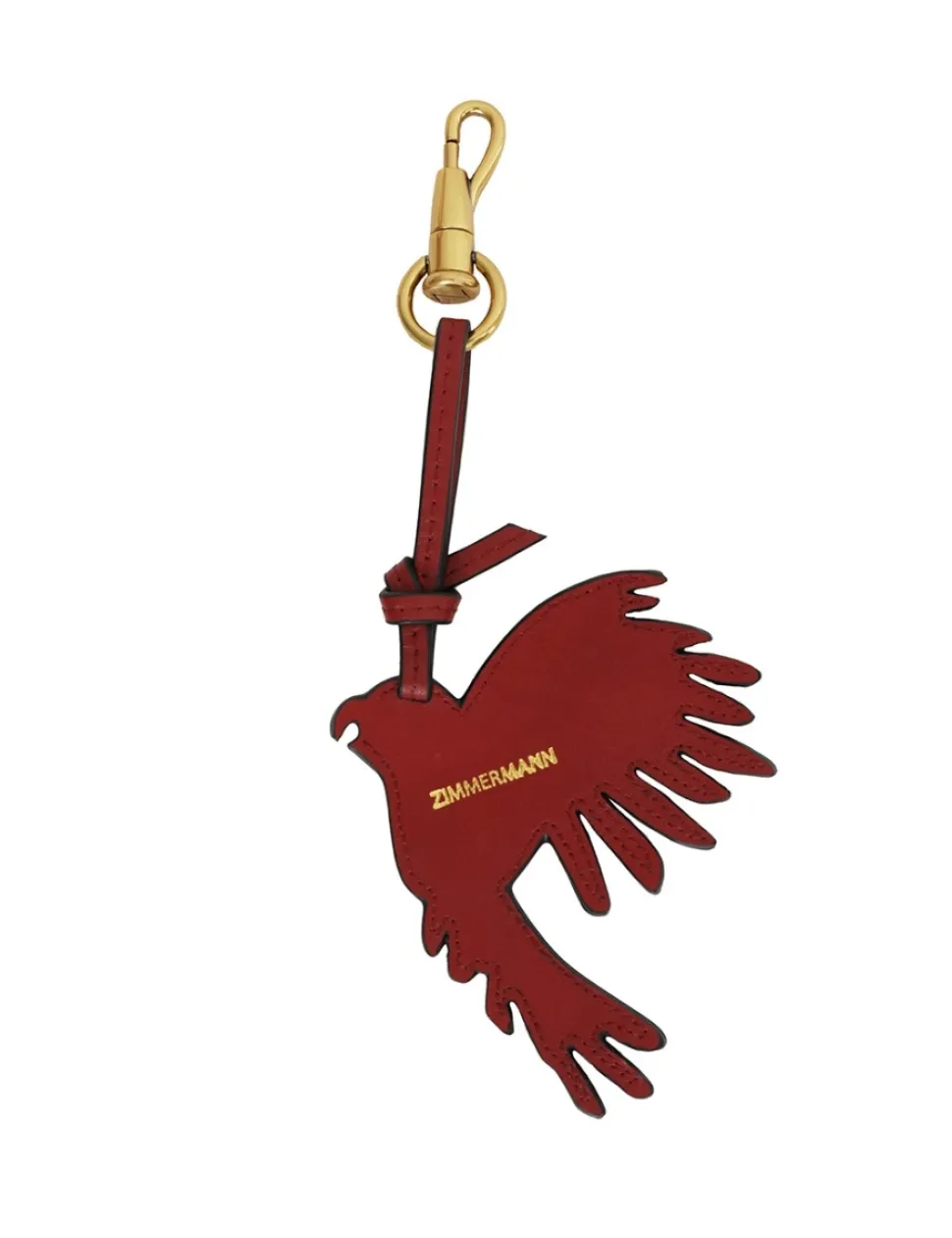 The Leather Parrot Keycharm In Red From Our Summer Swim 2023 Collection. A Keychain Featuring A Leather Parrot And Gold Plated Hardware.- Keychain