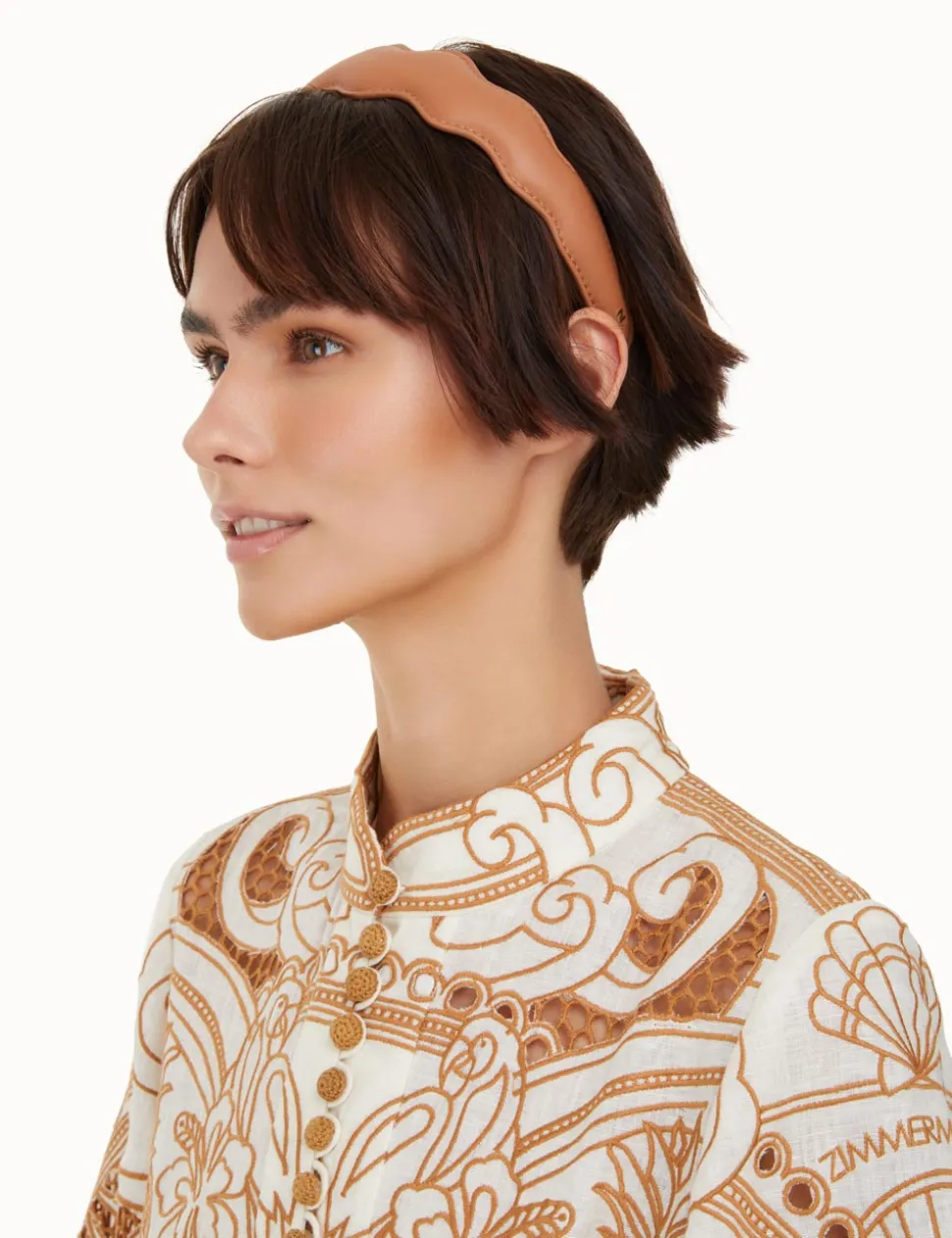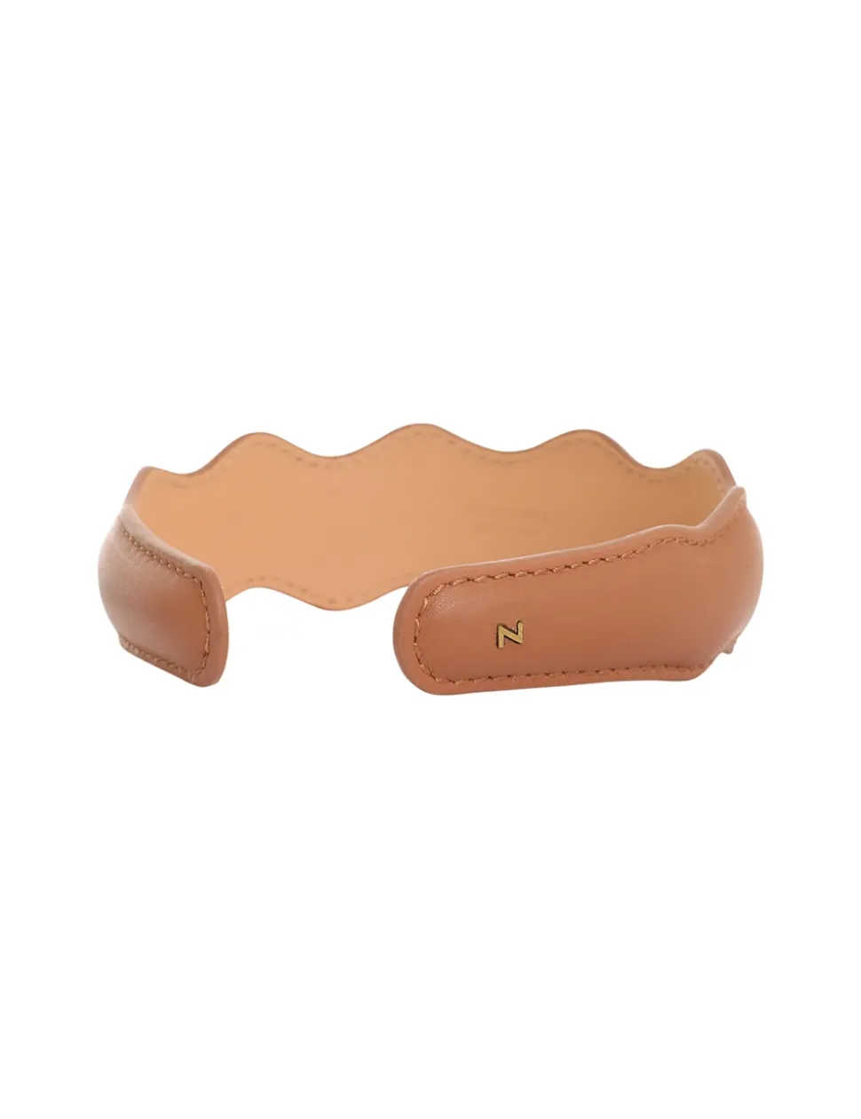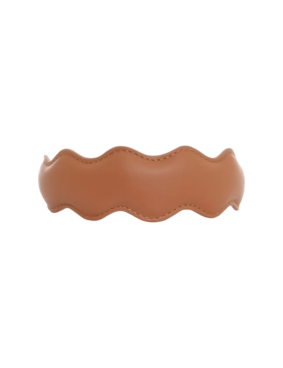The Leather Wave Headband In Tan From Our Summer Swim 2023 Collection. A Headband Featuring Scalloped Edges And Topstitching Throughout.- Leather Headband
